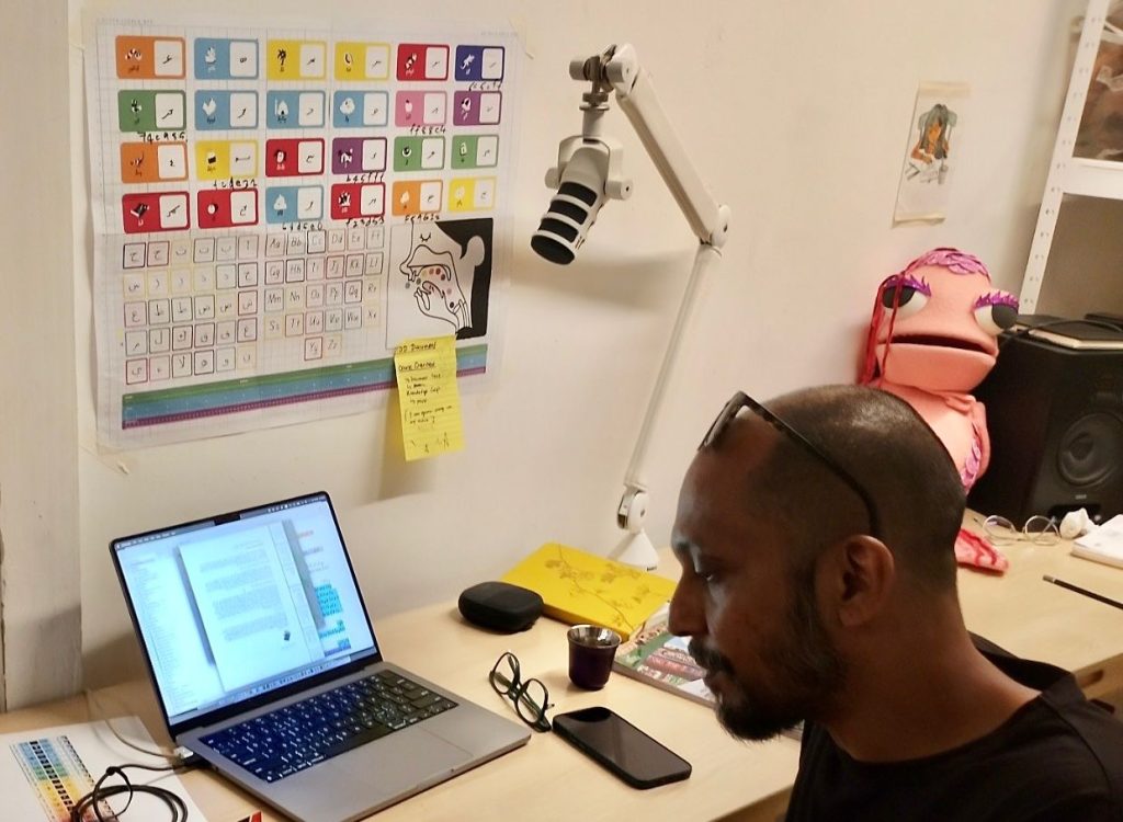 އެކަމަކު އެ ކުޑަ ސްޓޫޑިއޯ ތެރެއިން ފެނުނީ ކުޑަކުދިންގެ ވާހަކަތަކެއް ނޫނެވެ. ބޮޑެތި މާސިންގާ ދިރާސާތަކެވެ. ބޯޑުތަކުގައި ކުރަހާފައި ހުރި މައިންޑް މެޕް ތަކެކެވެ. ދިވެހި ބަހުގެ އަޑުތައް ނުކުންނަ ގޮތް (ފޮނެޓިކްސް) ދައްކުވައިދޭ ޗާޓުތަކަކާއި ކުލަ ބަރިތަކެކެވެ.
